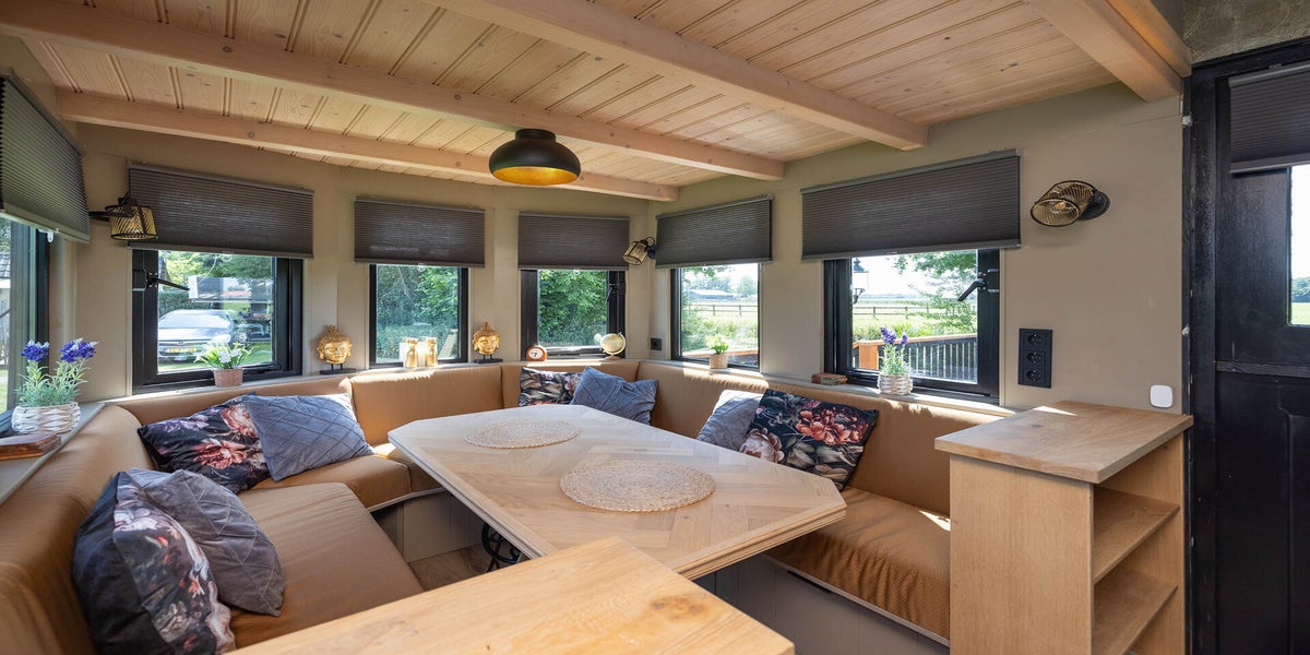 Binnen ervaar je direct de aangename warmte van de vloerverwarming. De ruime zithoek met tv nodigt uit tot gezellige avonden. De moderne keuken is van alle gemakken voorzien: